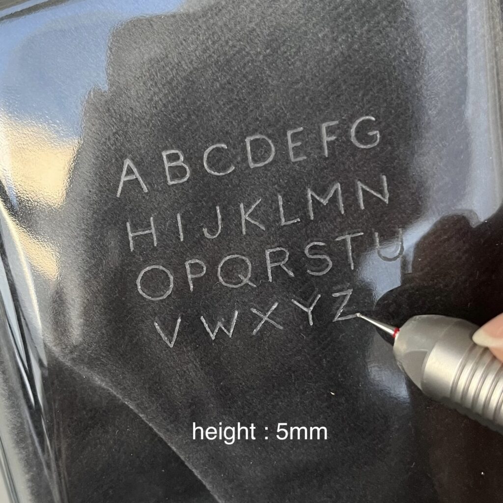 ・ガラス、金属などへのハンドエングレービング・刻印(静かで持ち運び可能な機材を使用)